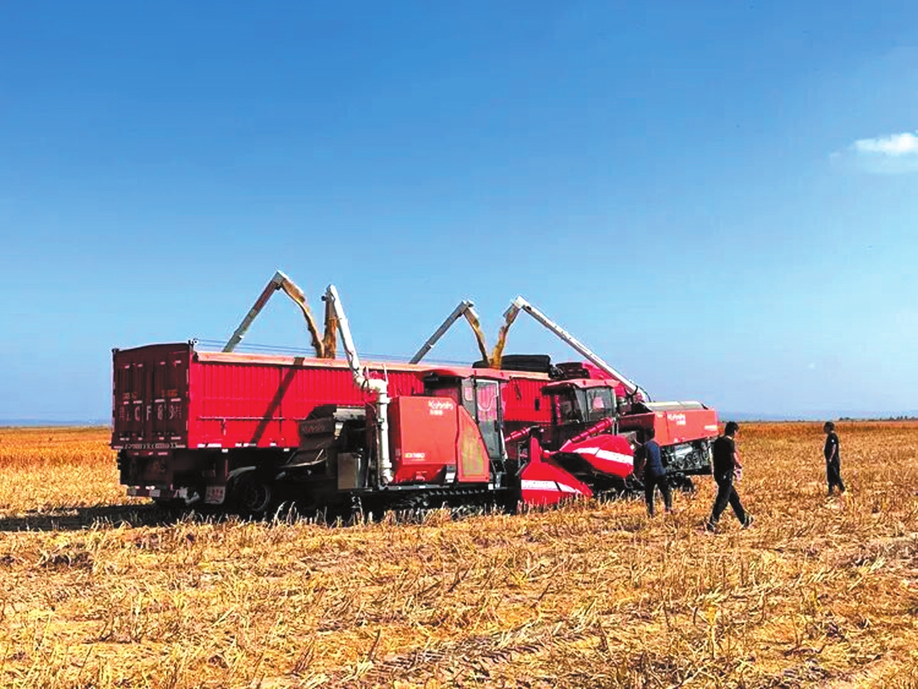 搭載北斗導航系統(tǒng)的聯(lián)合收割機作業(yè)現(xiàn)場