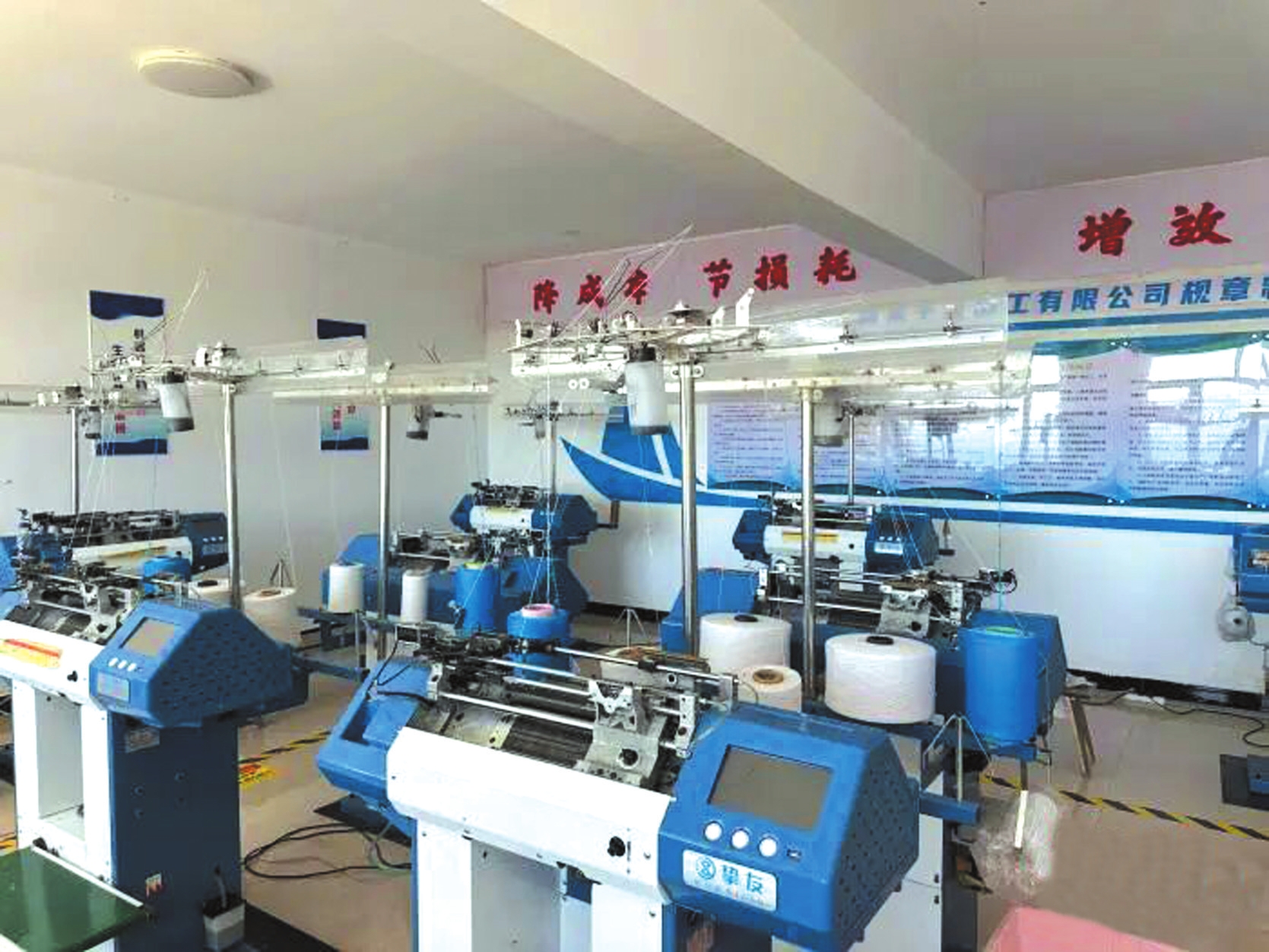 5日,筆者走進車間內(nèi),全自動生產(chǎn)機高速運轉(zhuǎn)生產(chǎn)手套。據(jù)了解,營盤梁村利用閑置校舍建成手套廠,初期配置15臺半自動低速手套編織機、2臺全自動高速手套編織機,2024年產(chǎn)量達15萬副。