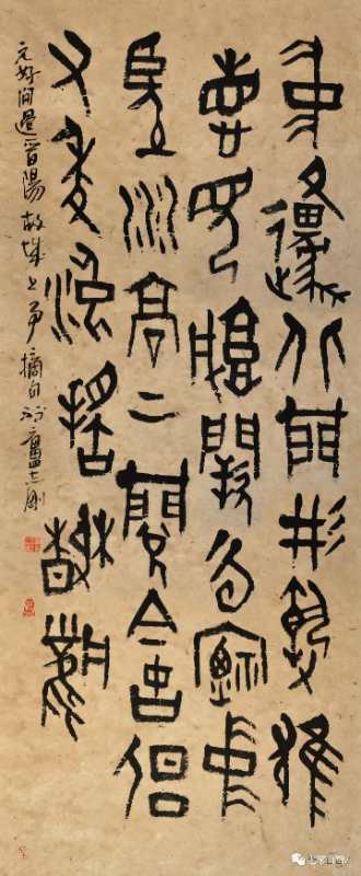 志剛先生因篆悟書(shū),于書(shū)入篆,實(shí)際上就是兼顧了書(shū)寫(xiě)的本質(zhì),找到了體現(xiàn)“漢字”本性的落點(diǎn)。對(duì)于一個(gè)書(shū)法家來(lái)講,除了解決書(shū)法的共性特征外,必須解決自己的個(gè)性特征才能名符其實(shí),否則就很難有較高的成就。因?yàn)椤白钡木C合性和獨(dú)特表現(xiàn)性,正好可以給書(shū)寫(xiě)者提供一種理解書(shū)法特質(zhì)的通道,那就是如何在更為有限的空間里呈現(xiàn)漢字審美的問(wèn)題!在篆里,漢字固定的型,卻可以,而且必須根椐不同的語(yǔ)境有所改變才會(huì)呈現(xiàn)出藝術(shù)魅力。也就是先能“有”,然后再進(jìn)入“無(wú)”,從“有”入“無(wú)”就可以得自由,如果能夠解決這一問(wèn)題,并將之綜合體現(xiàn)在書(shū)法創(chuàng)作中自然就會(huì)有在非同凡響的面貌。