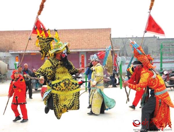 山西是民間社火之鄉(xiāng),定襄縣宏道鎮(zhèn)北社西村的大馬社火便是其中的佼佼者,也是較為獨(dú)特的一種。其特點(diǎn)是,集戲劇、舞蹈、武術(shù)、雜技、民樂和古代軍事布陣等為一體,用于民俗節(jié)慶、祭祀文化活動,整個(gè)表演過程沒有一句臺詞。據(jù)傳已有兩千多年的悠久歷史,傳承幾經(jīng)興盛和沉寂,最終得以完整地保留了下來,由于場面宏大、生動壯觀、審美價(jià)值較高,成為珍貴的民俗文化活化石。 把古代戰(zhàn)爭場面演練成劇,表現(xiàn)多為騎兵對戰(zhàn),故稱為大馬社火。今年春節(jié)期間,定襄北社西村大馬社火被錄制成視頻上傳后,成為最受歡迎的鬧紅火視頻之一,人們紛紛轉(zhuǎn)載,贊不絕口。剛剛過去的元宵節(jié),大馬社火也是定襄鬧元宵不可或缺的重頭戲,北社西村眾多村民自發(fā)組織起來耍社火,表達(dá)祈福驅(qū)邪,對風(fēng)調(diào)雨順、豐產(chǎn)增收的祈愿,形成了一道獨(dú)特的傳統(tǒng)民間文藝風(fēng)景,還吸引了山西省民間文藝家協(xié)會專家現(xiàn)場指導(dǎo),舉行了民間民俗文化調(diào)研座談會。