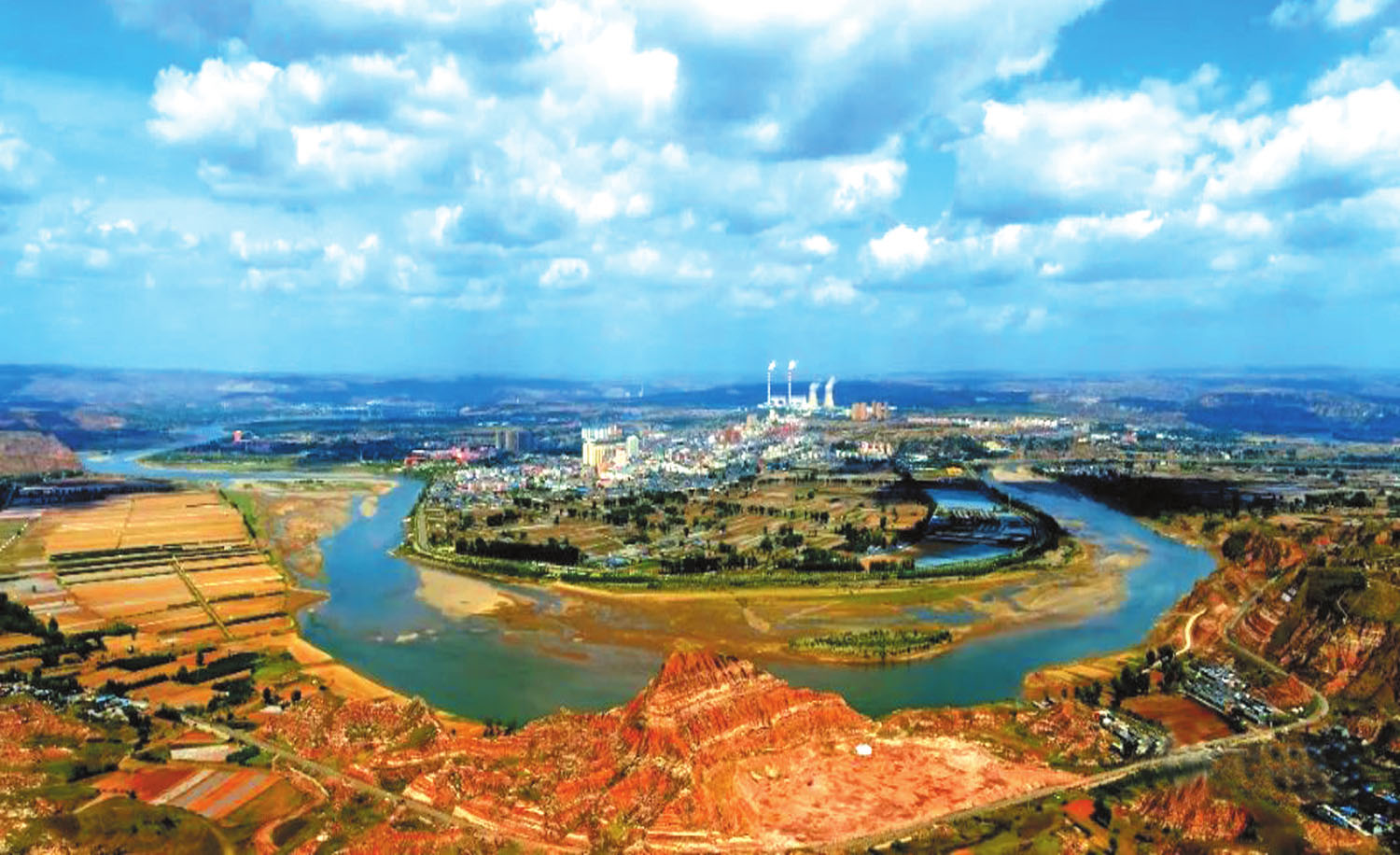 黃河由青藏高原巴顏喀拉山啟程,深入中華腹地,蜿蜒五千多公里,從古到今,奔涌不息,締造著文明,流淌著歷史。黃河在中國(guó)版圖上大大地畫了個(gè)“幾”字,幾字彎及其周邊流域被稱為河套地區(qū)?,主要涵蓋內(nèi)蒙古自治區(qū)、陜西、山西等?。▍^(qū))。山西省河曲縣正好地處晉、陜、蒙能源金三角的中心地帶,東接偏關(guān)、五寨,南接岢嵐、保德,西北與陜西省府谷縣、內(nèi)蒙古自治區(qū)準(zhǔn)格爾旗隔黃河相望。