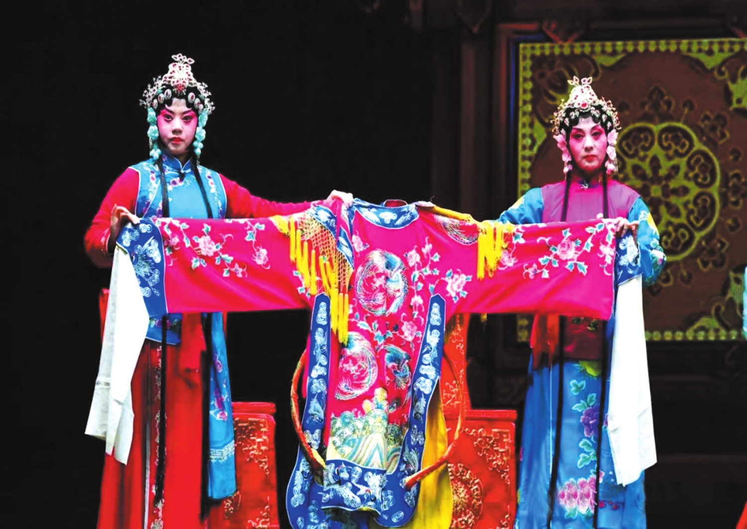 飾演王寶釧二姐王銀釧的太雨琴,13歲時就開始學習戲曲,憑借精湛的技藝,獲得了第十五屆中國少兒戲曲“小梅花金獎”。她主攻花旦兼演小生,是一位唱、念、做、打樣樣精通的青年新秀。在戲中,她把一個愛慕虛榮、極度勢利的王銀釧刻畫得惟妙惟肖,特別是依傍在丈夫魏虎身邊秀恩愛的情節(jié)更為出彩,現(xiàn)場戲迷好評不斷。