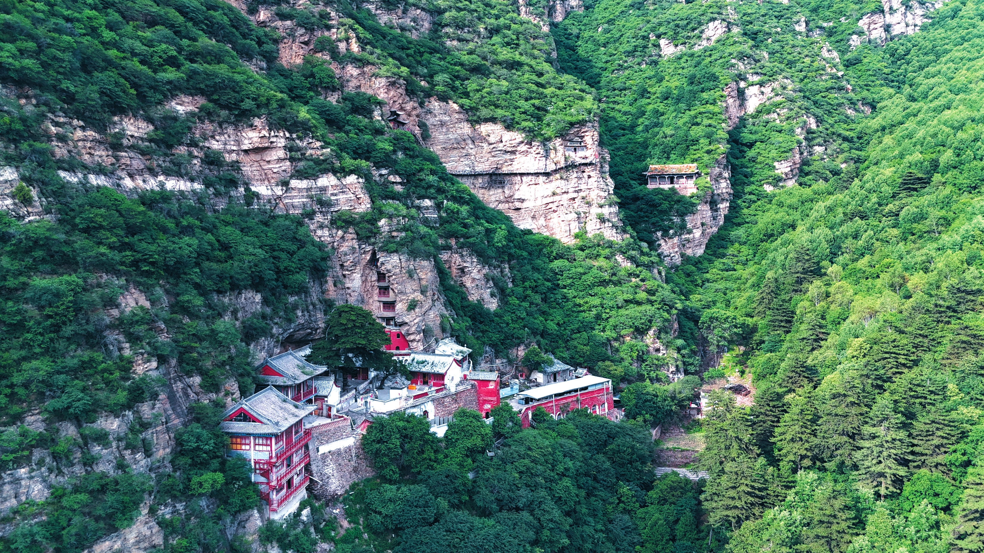 北天臺(tái)山的精魂,深植于溝掌幽邃處的“三晉第一觀”——趙杲觀。其名源自一段浸透血淚的春秋悲歌。據(jù)《呂氏春秋》記載,公元前475年,晉國卿大夫趙襄子為拓疆土,于夏屋山(今代縣東北,和勾注山相接)設(shè)謀誘殺其姐夫代王。代王夫人(趙襄子之姊)聞此噩耗,質(zhì)問弟弟無果,遂悲憤自戕以殉故國。代國丞相趙杲,毅然掛印封金,攜遺臣家眷遁入此山,避世苦修。后人感佩其忠貞氣節(jié),遂將其棲隱之地尊為“趙杲觀”。此觀依天然洞穴營建,素有“天臺(tái)十八洞,洞洞各不同”之奇絕,創(chuàng)建于北魏太延年間(公元435年-440年),歷經(jīng)一千五百余載風(fēng)霜,今為國家級(jí)森林公園、山西省重點(diǎn)風(fēng)景名勝區(qū)與重點(diǎn)文物保護(hù)單位。古人曾贊:“臨幽谷,倚奇巖,山清水秀,洵代郡之勝境,人間第一蓬萊也?!?/p>