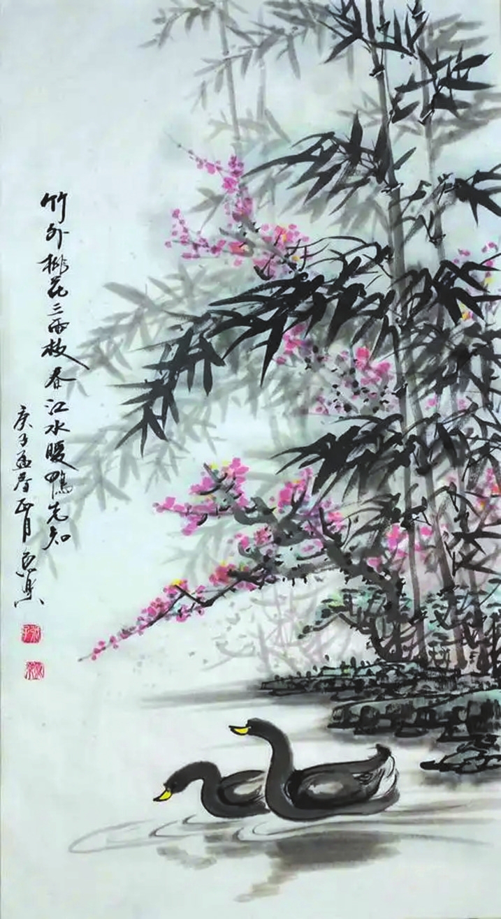 數(shù)字點染,精妙難言。古詩中常用數(shù)字實寫事物,前呼后應形成點染。蘇軾《惠崇春江晚景》中寫“竹外桃花三兩枝,春江水暖鴨先知”,先以“三兩枝”具體描寫桃花零星開放的實景,渲染初春的環(huán)境氣氛,再以“春江水暖鴨先知”點明題旨?!叭齼芍Α辈欢嗖簧偾〉胶锰帲c出初春的景物特征——少則春寒料峭,過于冷寂,多則春意盎然,稍嫌熱鬧,都無法與后文“春江水暖鴨先知”對季候變化的感悟相呼應。葉紹翁的《游園不值》云“春色滿園關(guān)不住,一枝紅杏出墻來”,先點出“春色滿園”的主旨,再以“一枝紅杏”具體渲染春天壓抑不住的蓬勃生機,以及作者游園不成忽見“春色”破墻溢出的驚喜。這個“一”是其余數(shù)字替代不了的,數(shù)字點染,準確精當,妙不可言。