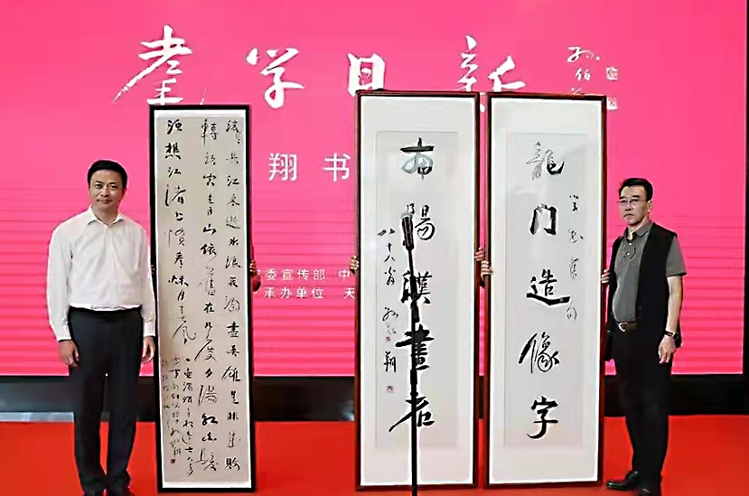 國慶節(jié)前夕,由中共天津市委宣傳部、中國書法家協(xié)會和天津市文學(xué)藝術(shù)界聯(lián)合會共同主辦,天津市書法家協(xié)會承辦的“耄學(xué)日新——孫伯翔書畫藝術(shù)展”在天津美術(shù)館開幕。 中國書法家協(xié)會分黨組書記、副主席李昕及相關(guān)領(lǐng)導(dǎo)、天津市有關(guān)部門領(lǐng)導(dǎo)及書法界、藝術(shù)界人士,全國書畫專業(yè)媒體和孫伯翔先生師友弟子等參加了開幕式。開幕式由中國書法家協(xié)會副主席、天津市文聯(lián)副主席、天津市書協(xié)主席張建會主持。