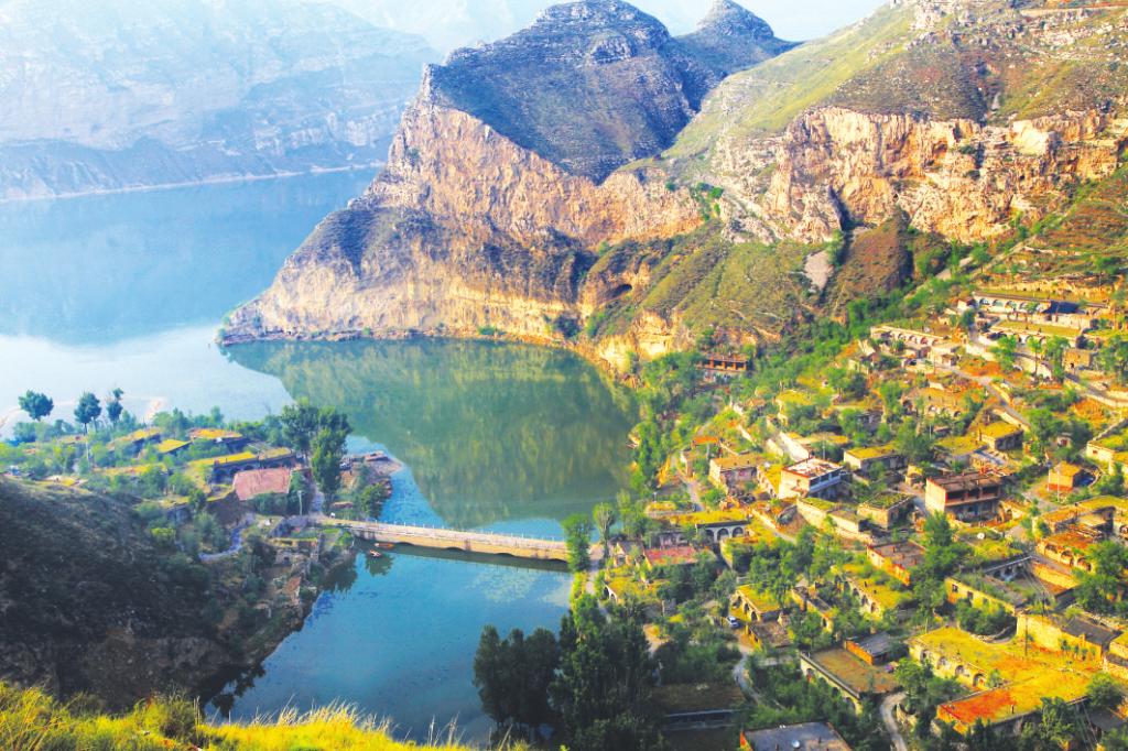 在黃河上形如半島的一個(gè)回水灣上,清清的關(guān)河水從東邊流來,匯入了黃河。對面是高山和村莊上的排排石頭窯洞,一層一層地排列在緩坡的綠蔭里。河邊有果圃,河中有捕魚船,關(guān)河上還有石拱平面橋,過得去卡車,更過得去羊馬驢騾。從山水形勢上看,這里是高崖深壘,有渡口,從大面上看是一個(gè)死角,然而又是一個(gè)興于明盛于清的重要水旱碼頭,有長城、有烽火臺和古堡。康熙四十年(公元1701年)西北放墾,這里成為北糧進(jìn)入晉地的轉(zhuǎn)運(yùn)點(diǎn)。北上的晉商也由此進(jìn)入黃河上游,關(guān)河口也就成了糧食、茶葉、布匹和皮毛、牲畜交流互換的水上集散地。