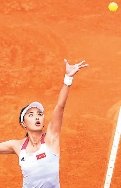 王薔在比賽中發(fā)球。