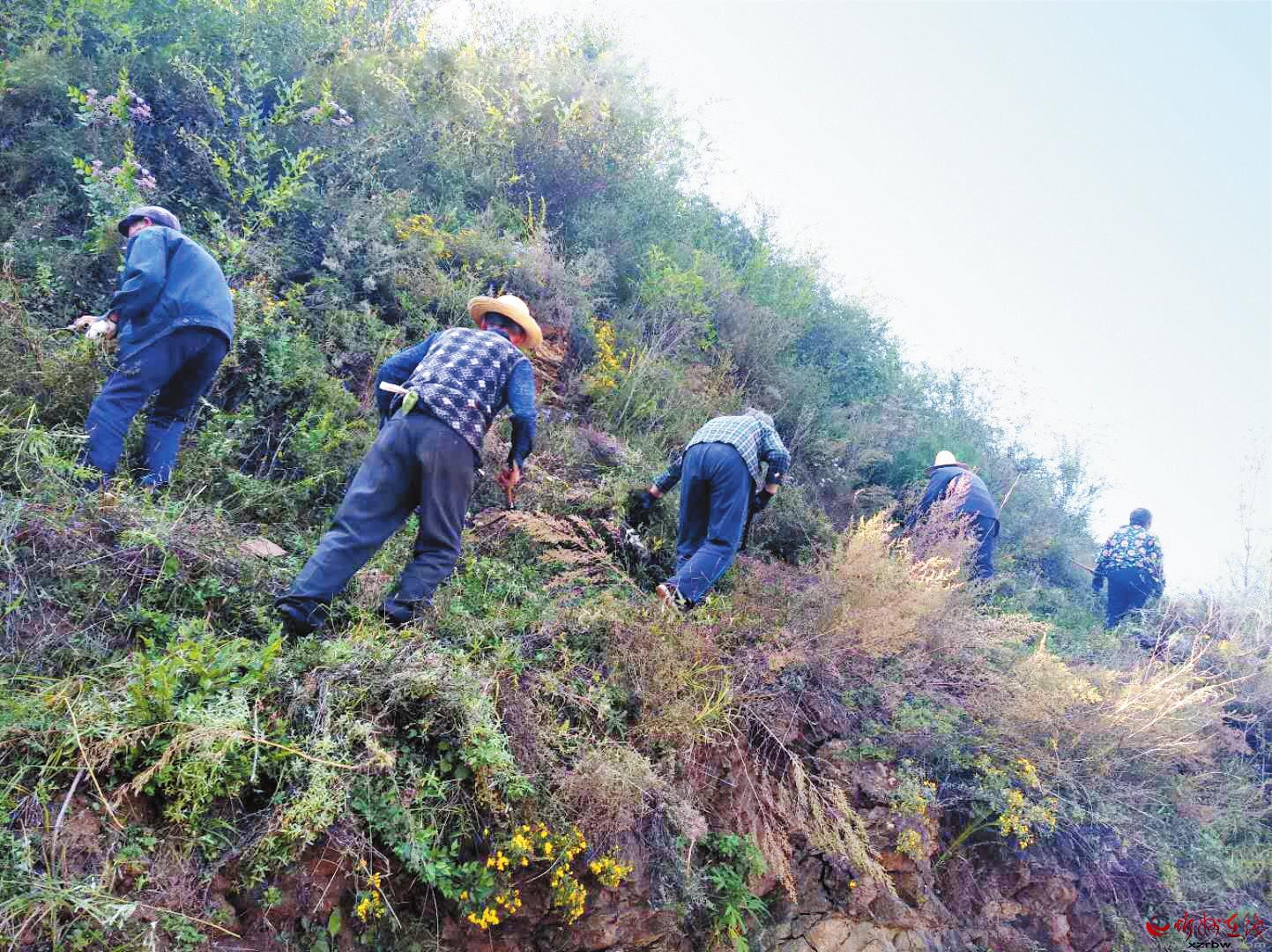 五臺縣從9月底開始就積極組織人員清理林地雜草、構(gòu)筑林邊防火隔離帶等,提前為秋冬季護林防火工作做準備。圖①為瑤芝村村民在構(gòu)筑防火隔離帶;圖②為西崗村村民自發(fā)上山清理林地雜草。 郭耀峰 許 凈 攝影報道