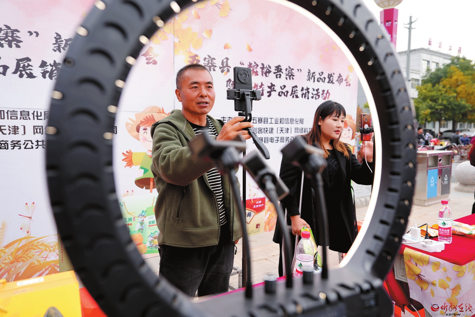 網(wǎng)絡(luò)直播推銷(xiāo)特優(yōu)農(nóng)產(chǎn)品。劉篤效 攝