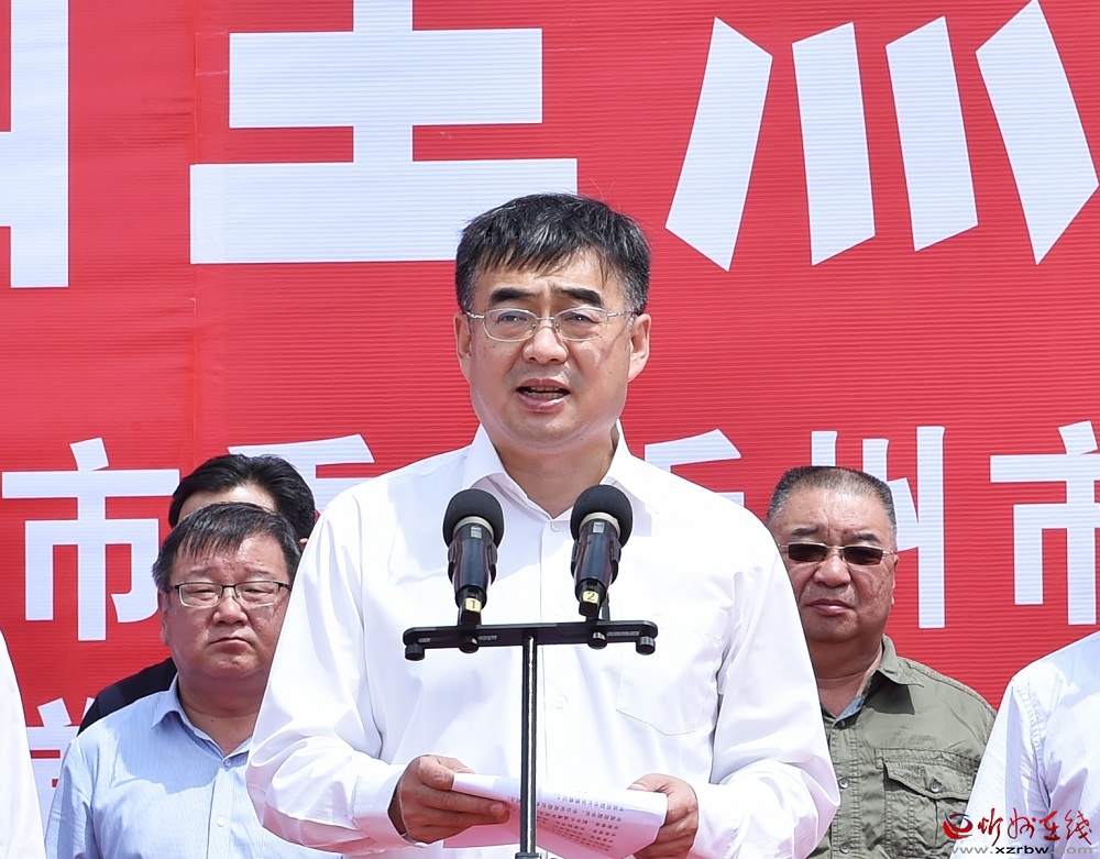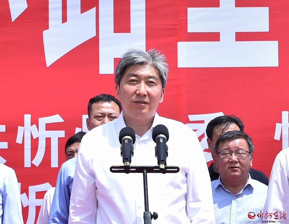 啟動儀式上,朱曉東、李建國、郭奔勝、王珍、范建民分別為各指揮部授旗。原平市市長、定襄縣縣長、市交通運(yùn)輸局局長分別就忻原大道將軍山隧道控制性工程和忻原大道跨朔黃鐵路、滹沱河大橋控制性工程及太忻大道跨二廣高速控制性工程建設(shè)作表態(tài)發(fā)言。