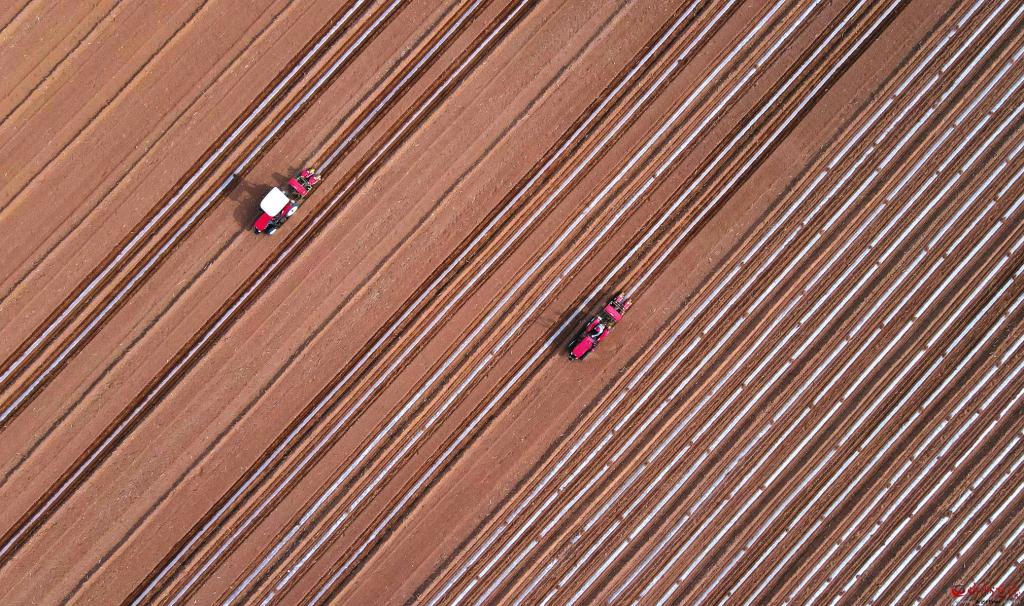 4月21日,在忻州民宇農(nóng)業(yè)甜糯玉米標準化種植基地,兩臺玉米膜側播種機聯(lián)合作業(yè),搶農(nóng)時進行播種。近年來,該基地采用玉米膜側播種綜合栽培技術進行播種,有效解決了高溫導致玉米早衰等問題,提高了降水利用率,增加了玉米產(chǎn)量。 (張存良攝)