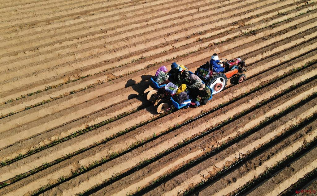 3月30日,在忻府區(qū)解原村的農(nóng)田里,村民利用晴好天氣搶種大蔥,機械人工齊上陣,田間地頭一片忙碌景象。(