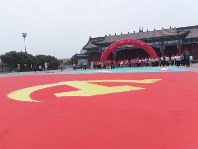 7月2日,我市十幾位沙畫藝術(shù)工作者,在崇福寺廣場用沙畫藝術(shù)的方式向黨的二十大獻(xiàn)禮。一丟、一刮、一勾、一點(diǎn),旋出他們青春的足跡,畫出對黨和祖國的溫馨祝福。他們用了4個(gè)多小時(shí)、耗費(fèi)了300多公斤細(xì)沙,繪出了黨旗的巨幅沙畫,“喜迎二十大”六個(gè)大字相襯下方,黃色的華表、雄偉壯麗的長城、遨游的飛行員、憨憨的冰墩墩更是活靈活現(xiàn)、躍然眼前。