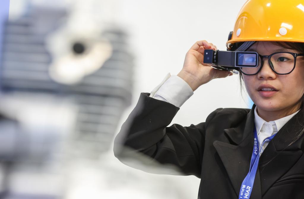 6月1日,昆山元宇宙產(chǎn)業(yè)園內(nèi)的亮風(fēng)臺(tái)(昆山)信息科技有限公司里,工作人員在演示AR智能穿戴設(shè)備賦能工業(yè)應(yīng)用的場(chǎng)景。新華社記者 楊磊 攝