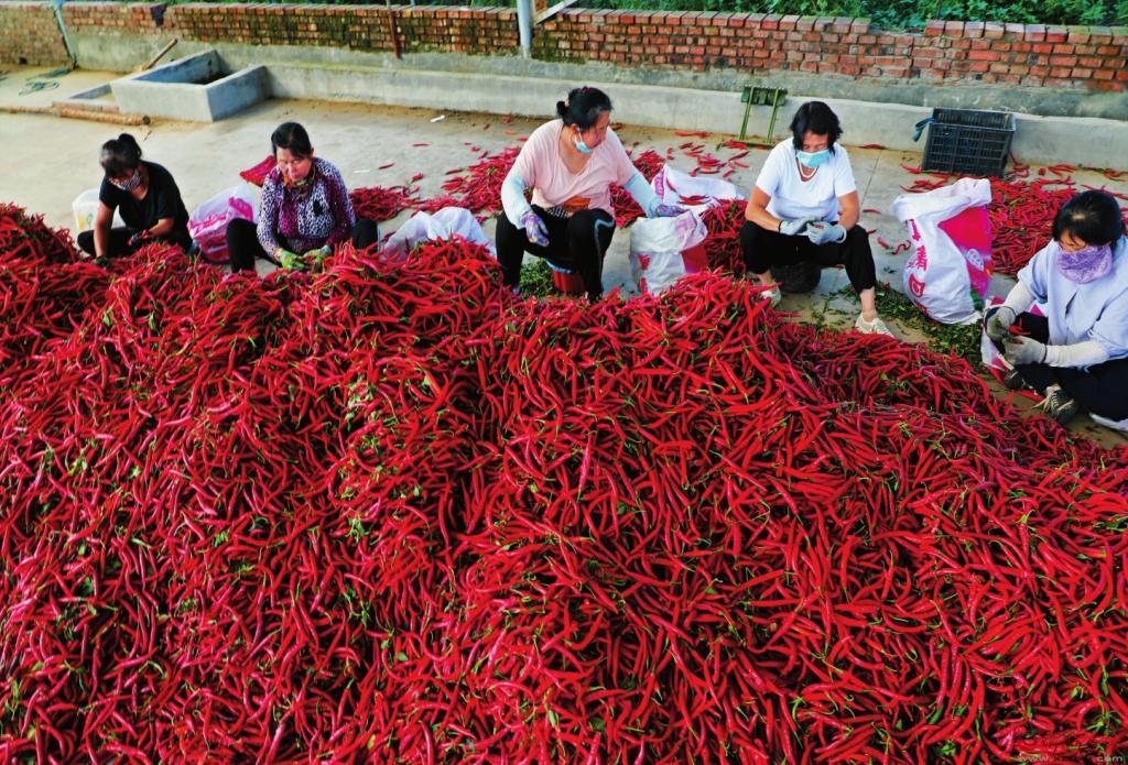 從一開(kāi)始的小打小鬧,到現(xiàn)在辣椒產(chǎn)業(yè)已成為全村農(nóng)民增收的主要途徑,形成了以種植商品椒為特色的辣椒種植基地。“現(xiàn)在我們村辣椒種植面積在5000畝左右,村民們還在外縣、外村包地種辣椒,規(guī)模已達(dá)2萬(wàn)畝左右?!备叱谴妩h支部書(shū)記、村委會(huì)主任羅前緒介紹。