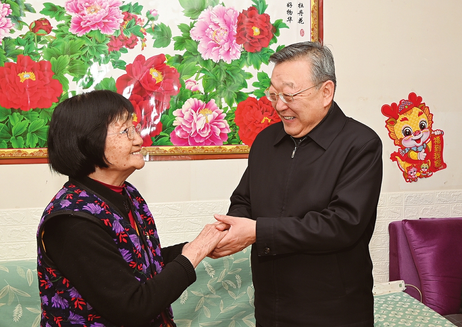 農(nóng)歷龍年春節(jié)來臨前夕,省委書記、省人大常委會(huì)主任唐登杰在太原市看望慰問老黨員、軍烈屬和困難職工,代表省委、省政府向全省廣大黨員干部群眾送上誠摯問候和新春祝福。山西日?qǐng)?bào)記者史曉波攝
