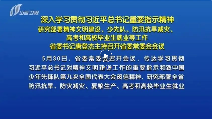 5月30日,省委常委會召開會議,傳達(dá)學(xué)習(xí)貫徹習(xí)近平總書記對精神文明建設(shè)工作的重要指示和致中國少年先鋒隊第九次全國代表大會賀信精神,研究部署全省防汛抗旱、防災(zāi)減災(zāi)、夏糧生產(chǎn)、高考和高校畢業(yè)生就業(yè)等工作。省委書記唐登杰主持會議。
