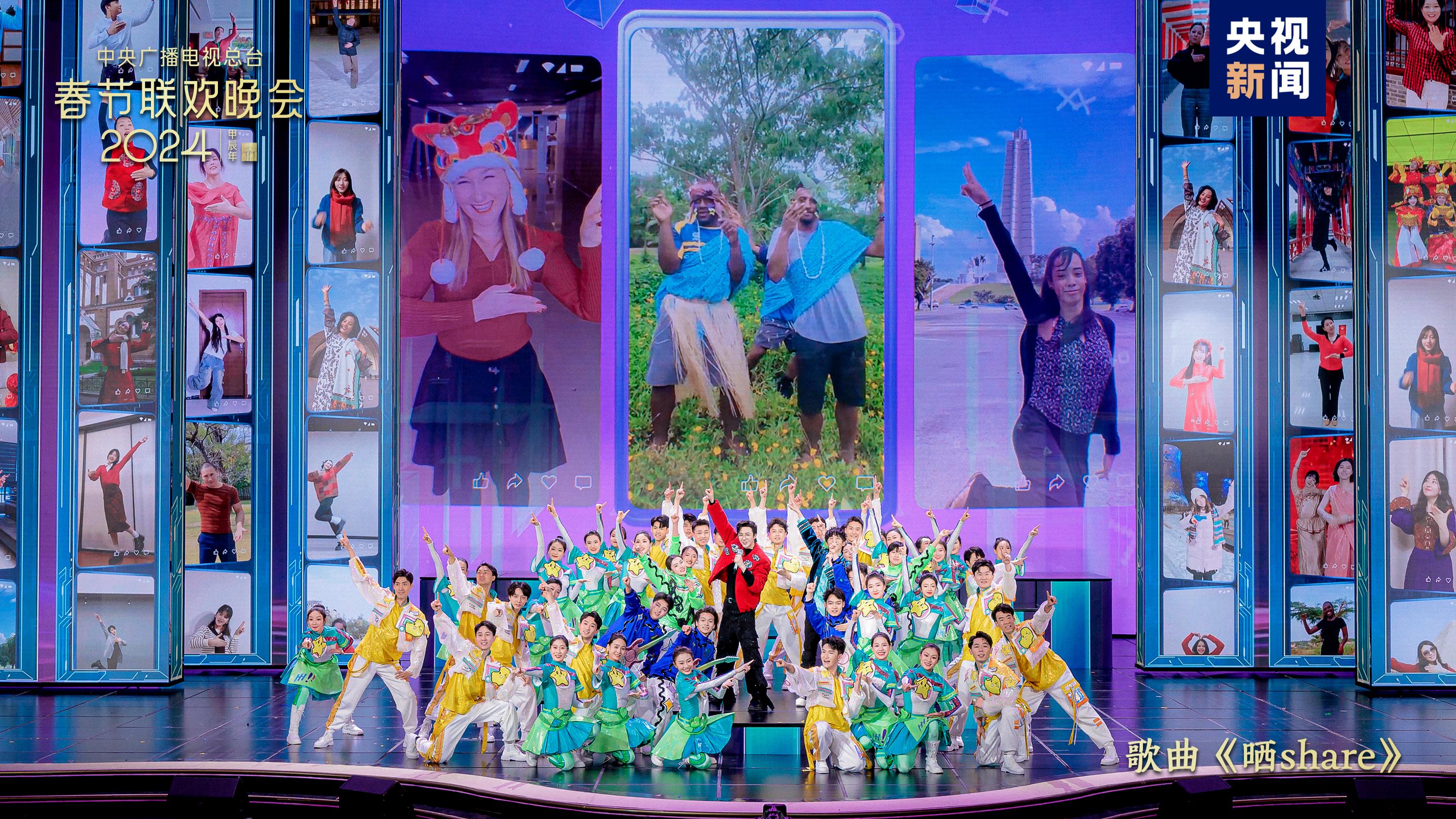 伴著一曲動(dòng)感快樂的《曬share》,大張偉、劉宇寧與全球網(wǎng)友聯(lián)屏共舞“龍年主題舞蹈”,分享春節(jié)的喜慶歡樂。這支舞蹈來(lái)自總臺(tái)在海內(nèi)外社交平臺(tái)發(fā)起的龍年主題舞蹈挑戰(zhàn)賽,目前已吸引68個(gè)國(guó)家和地區(qū)的網(wǎng)友熱情參與,全球閱覽量超5.89億。今年正值中法建交60周年暨中法文化旅游年,索拉爾、廖昌永、吉安·馬可·夏雷提、張英席、安杰洛·德爾·維奇奧、袁岱等中外藝術(shù)家共同演繹《美人》(法語(yǔ)音樂劇《巴黎圣母院》選段)。全球共舞,以歌會(huì)友,總臺(tái)春晚用文藝精品促進(jìn)文化交流互鑒,讓美美與共的文明百花園生機(jī)盎然。