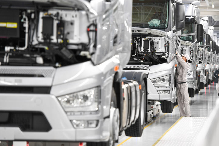 2024年2月19日,工人在位于吉林省長春市的一汽解放J7整車智能工廠裝配車輛。新華社記者 張楠 攝