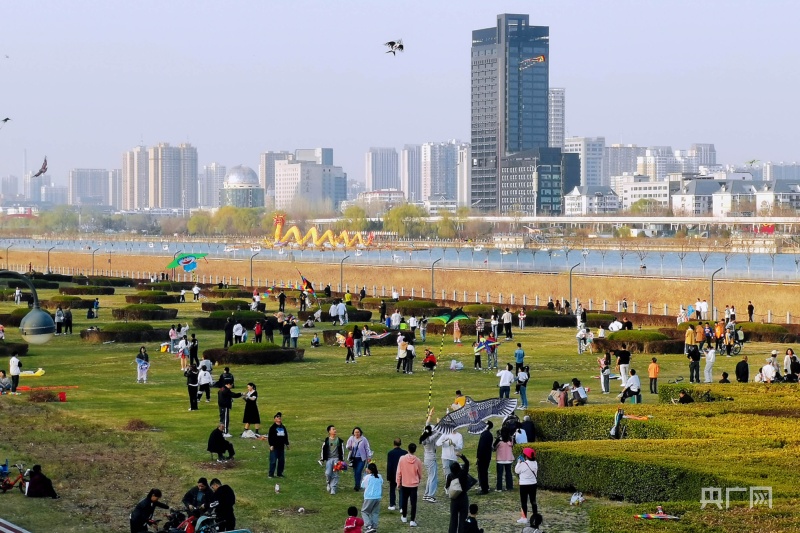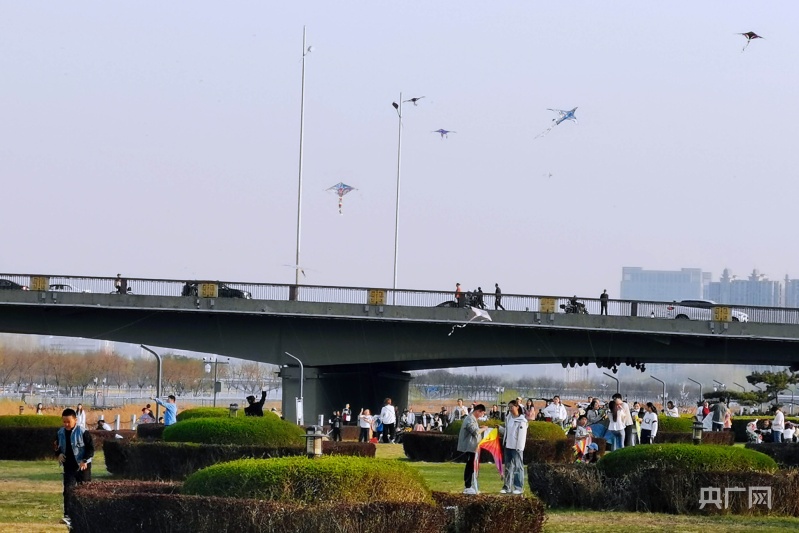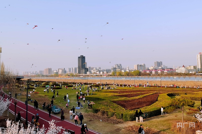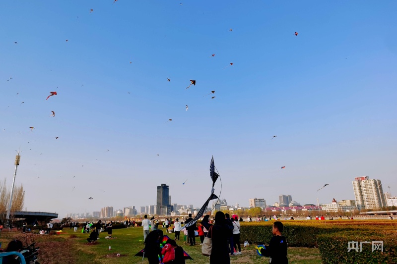 市民聚集在綠意盎然的汾河岸畔放風(fēng)箏(央廣網(wǎng)記者 郎麒 攝)