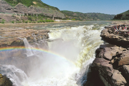洶涌奔流的黃河水跌入龍槽,白浪翻滾,聲若雷鳴。一進(jìn)入黃河壺口瀑布旅游區(qū),來自河北的游客王鑫就被“清流飛瀑”奇特景觀吸引?!疤鸷沉?!奔騰向前百折不回的黃河,讓人頓生強烈的民族自豪感?!彼B連贊嘆。