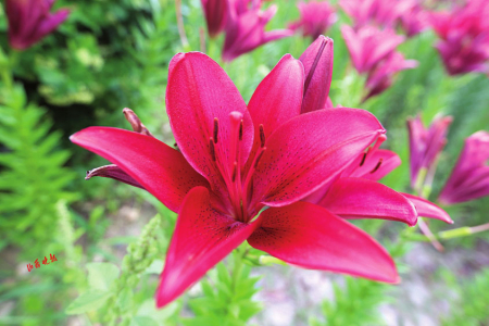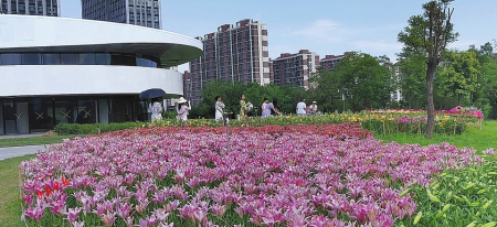 百合花種類繁多,形態(tài)各異。純凈高雅的白色、熱情嫵媚的紅色、明麗澄澈的橙黃、浪漫俏皮的粉紅、雍容華貴的紫色,形似漏斗,又如喇叭,或向上開花,張揚(yáng)外翻、極端華麗,或含露低垂,矜持含蓄、超凡脫俗。花間蜂蝶飛舞,暗香浮動(dòng),游人三五成群,在花叢合影拍照,游玩嬉戲,好不愜意。市民王女士對這里贊賞有加:“看到這五顏六色的百合花,我的心情像盛開的花一樣,特別美!這里每季有每季的花開,每次來都有不一樣的驚喜和精彩?!?/p>