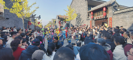 踏著節(jié)奏感十足的古風電音,一群身著古服、戲裝的年輕人從人群中跳出來,瞬時集結(jié)編隊,跳起熱舞。圍觀的人群跟著沸騰起來,大家鼓掌打拍、搖擺身姿,爆發(fā)出陣陣歡呼聲。農(nóng)歷大年初六,沁水縣土沃鄉(xiāng)下沃泉村的“沃泉星夢童年小鎮(zhèn)”街道上,正在進行的“國潮快閃”表演掀起歡樂浪潮。不止這一刻,也不止這一處。從大年初一開始,這里每天歡娛不停,處處熱鬧非凡。