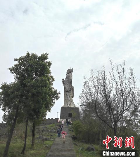 沿著山路盤(pán)旋而上,李白當(dāng)年于白兆山所寫(xiě)下的詩(shī)句,恰如眼前看到的風(fēng)景。遠(yuǎn)遠(yuǎn)地,一座高大的雕像映入眼簾。為紀(jì)念李白,白兆山上修建了一座花崗巖李白石像:只見(jiàn)他左手緊握劍柄,目視遠(yuǎn)方,似有“我本楚狂人,鳳歌笑孔丘”之豪氣。