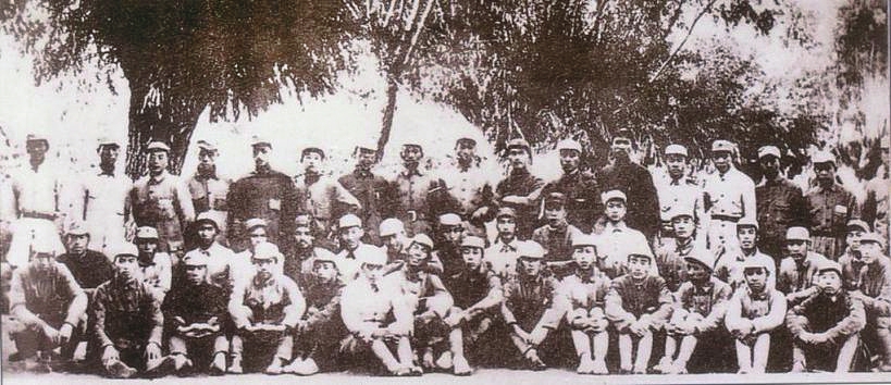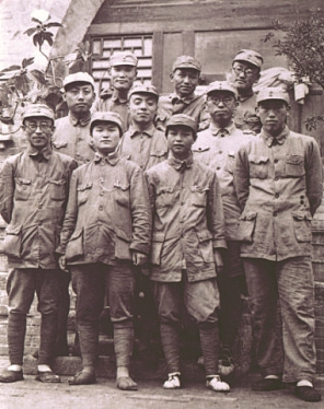 圖10 1938年1月,八路軍第一一五師主力開(kāi)辟晉西南抗日根據(jù)地。圖為羅榮桓(二排左三)、楊尚昆(二排左二)等在孝義。