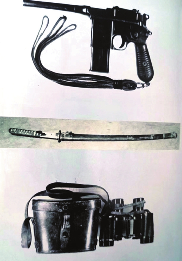 趙正午在與日寇和偽軍的戰(zhàn)斗中,使用最多的是三種武器,即手槍、大刀和望遠(yuǎn)鏡。手槍,該槍型于1895年經(jīng)改裝后由一次性裝10發(fā)子彈發(fā)射變成20發(fā)。這種槍管長約140毫米,口徑7.63毫米。由于槍套是一個木盒,故又稱這種槍為“匣子槍”“盒子炮”,或“駁殼槍”。八路軍和游擊隊(duì)在抗戰(zhàn)時期廣泛使用。大刀,刀身采用鎳合金鋼材機(jī)械加工,刀身開設(shè)血槽,刀柄大部分為木質(zhì),全長101.8厘米??箲?zhàn)期間,日軍不少軍刀被我八路軍和游擊隊(duì)繳獲,成為我對敵作戰(zhàn)的武器之一。當(dāng)年,趙正午在戰(zhàn)斗中繳獲了一把這款軍刀。望遠(yuǎn)鏡,德國于1920年前后研制生產(chǎn)的一種兩筒軍用望遠(yuǎn)鏡,具有較高的放大倍數(shù)和物鏡直徑,適合遠(yuǎn)距離觀察和戰(zhàn)場偵察??箲?zhàn)初期流入我國,該望遠(yuǎn)鏡長16厘米,寬11厘米。忻口戰(zhàn)役后,忻縣游擊隊(duì)在戰(zhàn)場上繳獲。