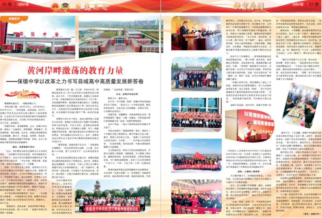 從政策定調(diào)到管理革新,從課堂攻堅到教師培養(yǎng),再到立德樹人,保德中學(xué)完成了一場深刻的自我革命。2024年,該校被確立為忻州市縣域高中綜合改革試點學(xué)校。這既是對過往探索的肯定,也意味著更大的責(zé)任。